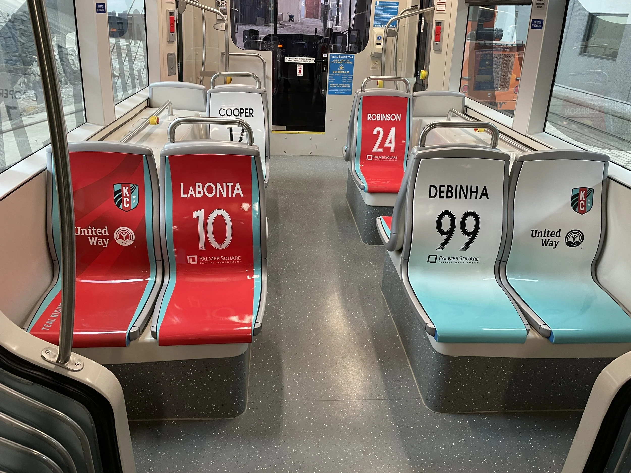 A unique feature of the streetcar could be found on the inside. Each seat was wrapped with a flattened design of the home and away uniforms, with player names and numbers.